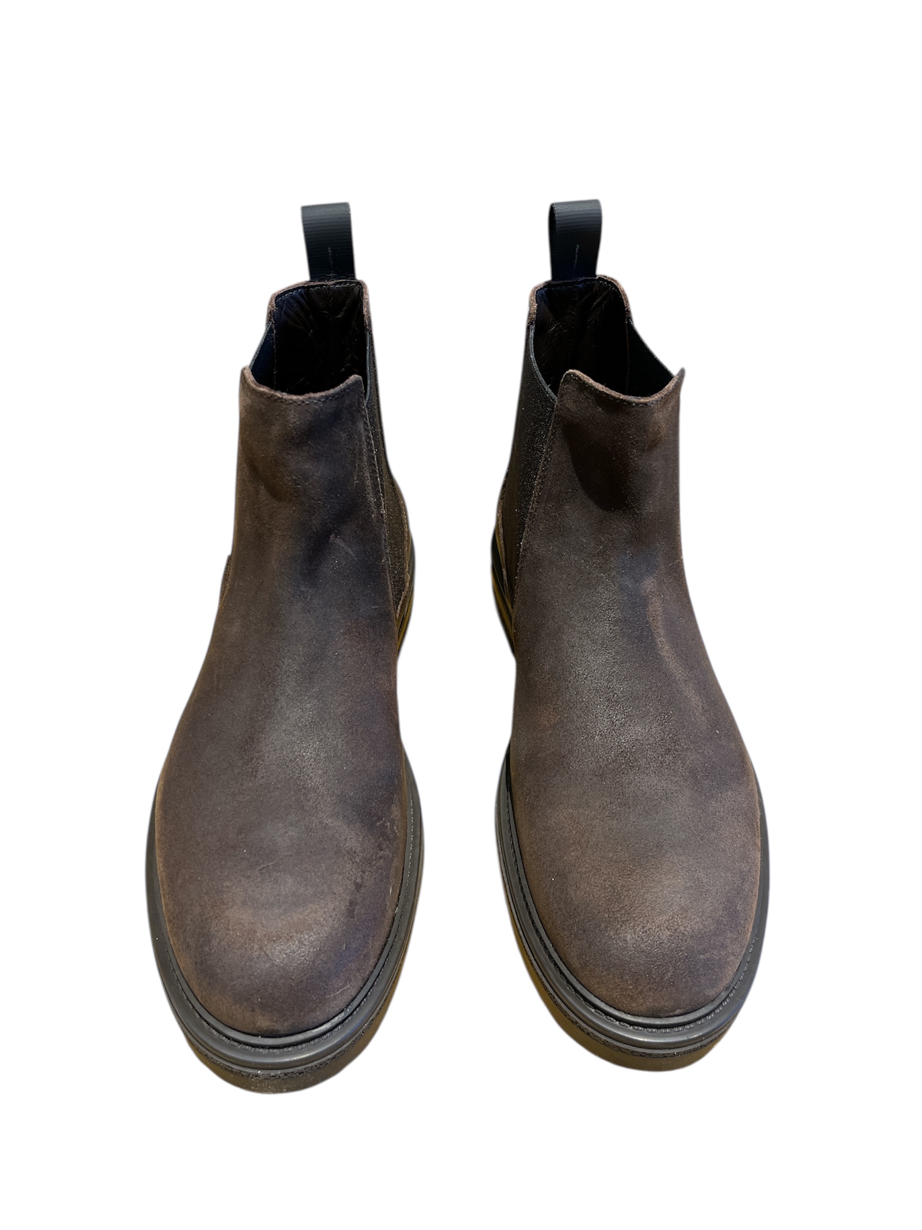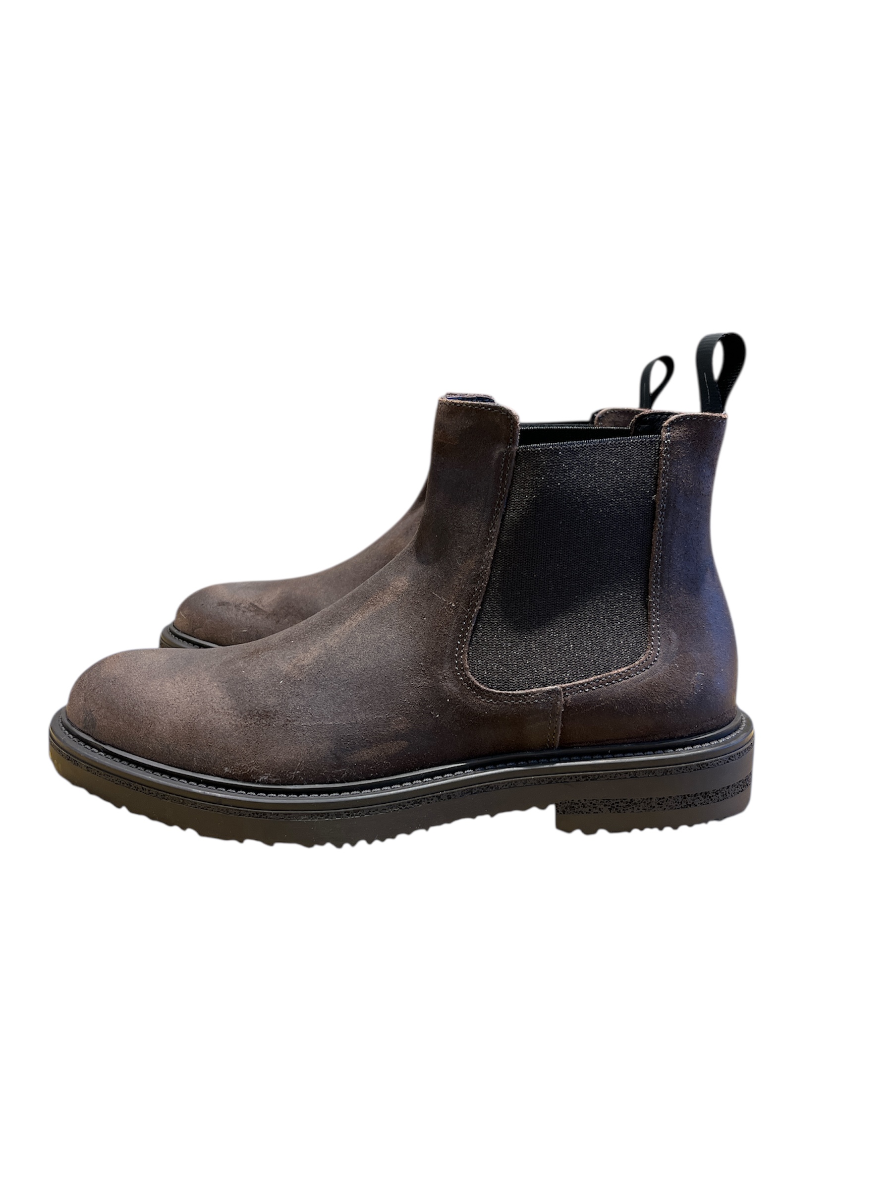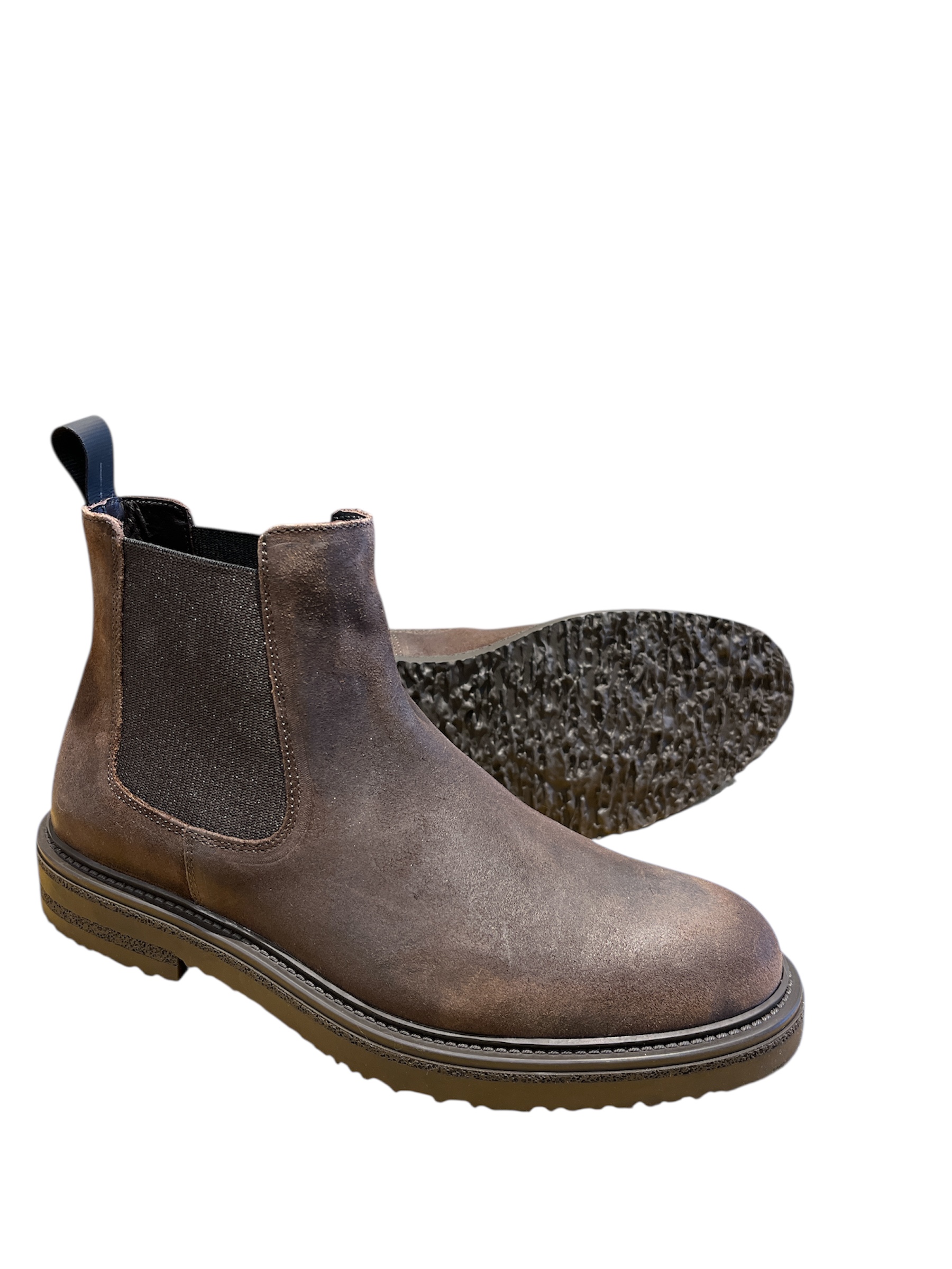 Beatles in pelle dall’effetto vissuto marrone con elastici bilaterali e pull-up posteriore per una facile calzata. Fodera in pelle e sottopiede estraibile con memory, foderato in microfibra cerata. Suola in gomma