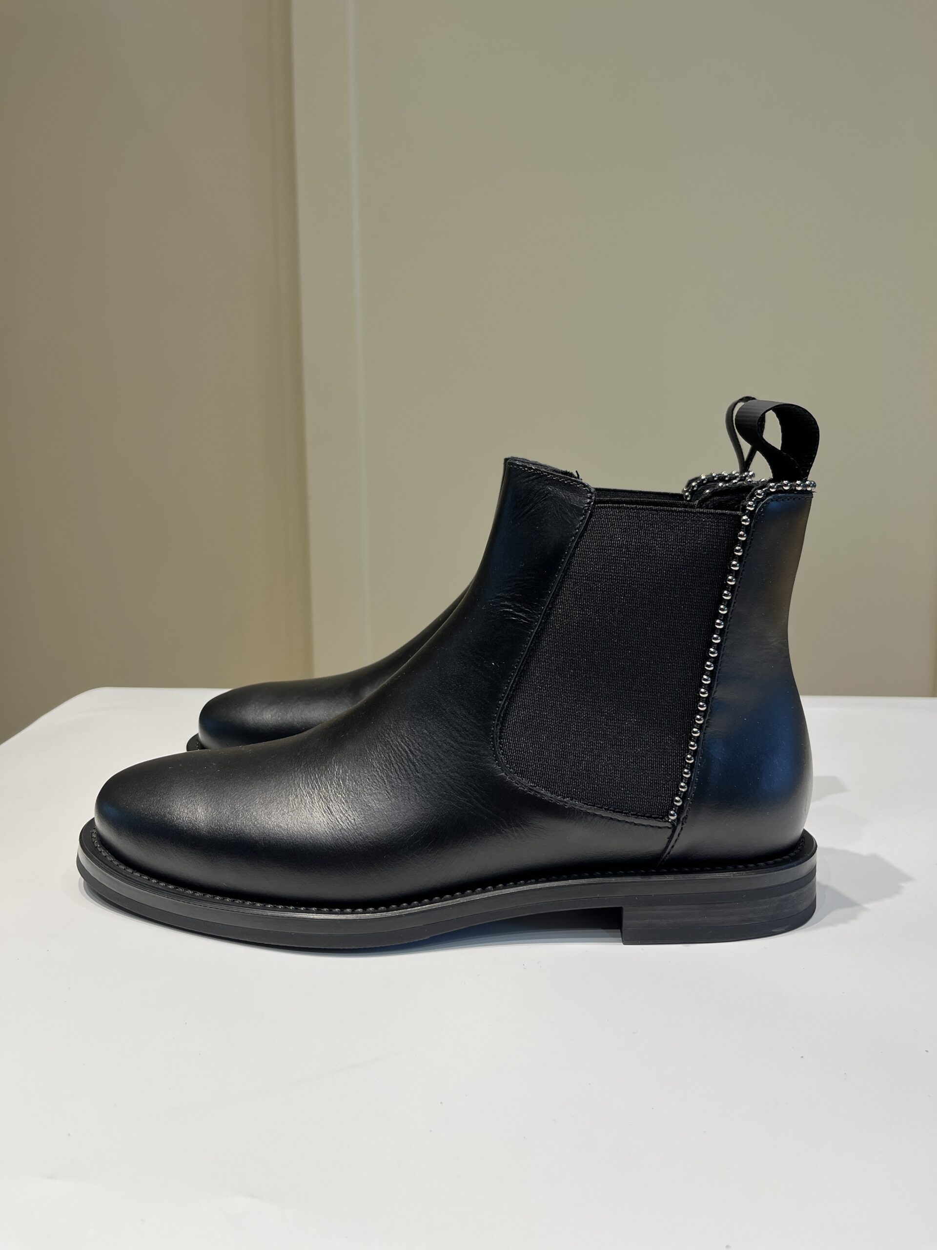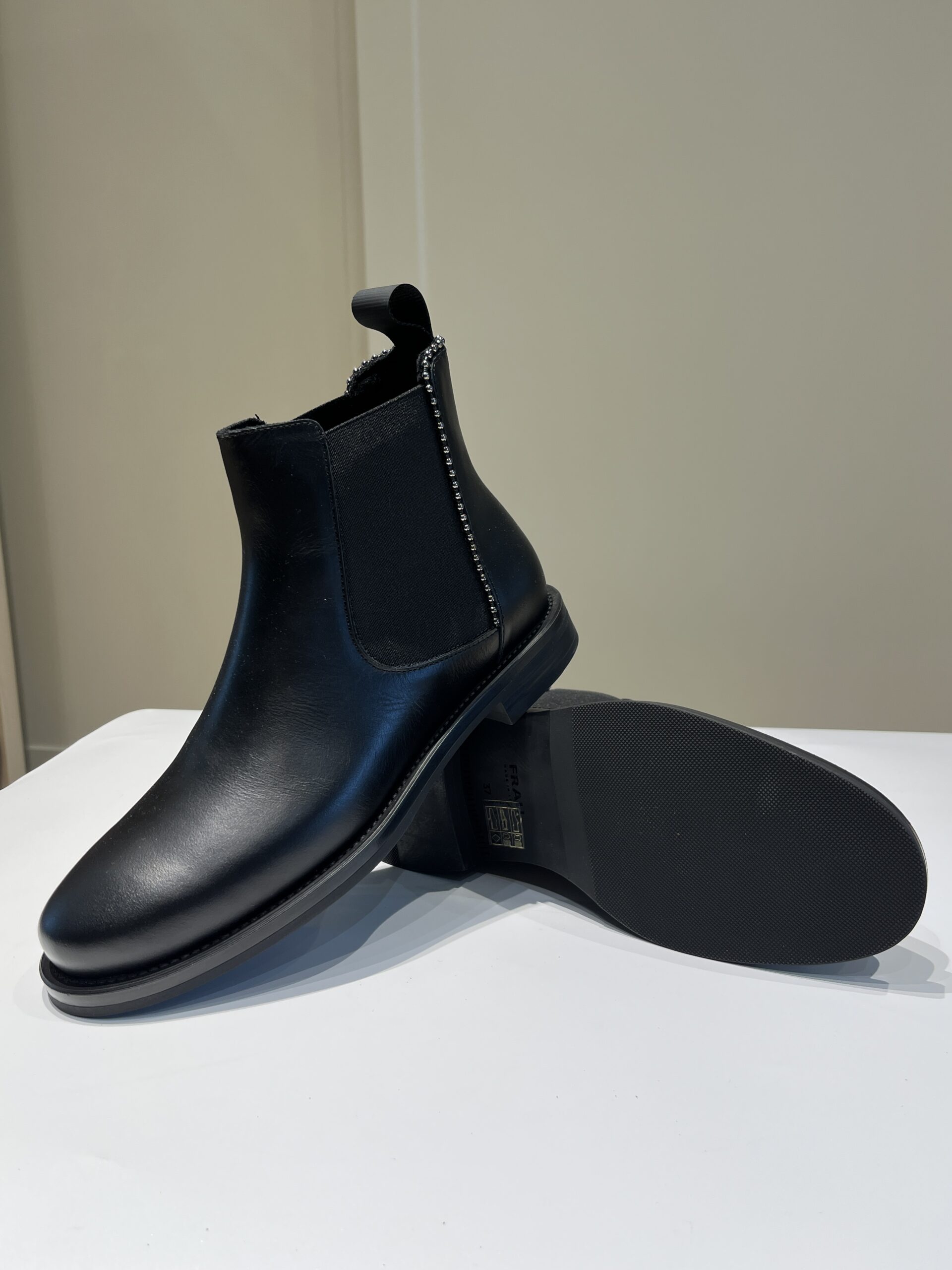 Beatles in pelle nera con elastici bilaterali profilati con mini-borchiette. Fodera in caldo e morbido tessuto vellutato