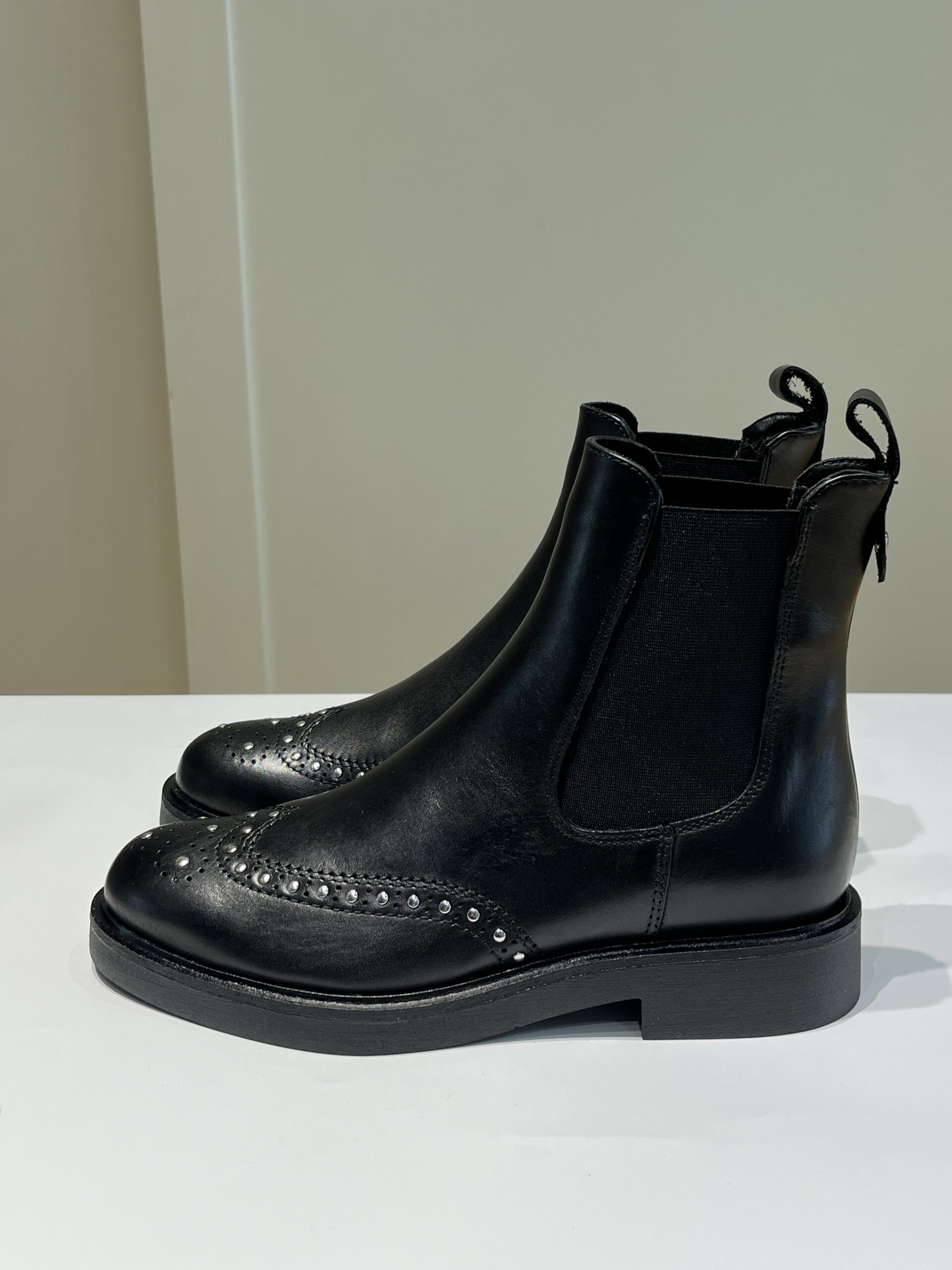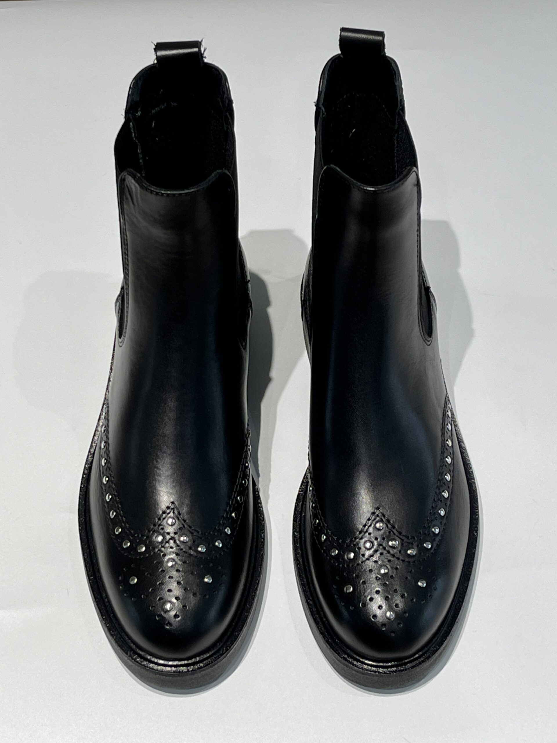 Beatles in pelle nera con motivo coda rondine e micro borchiette.