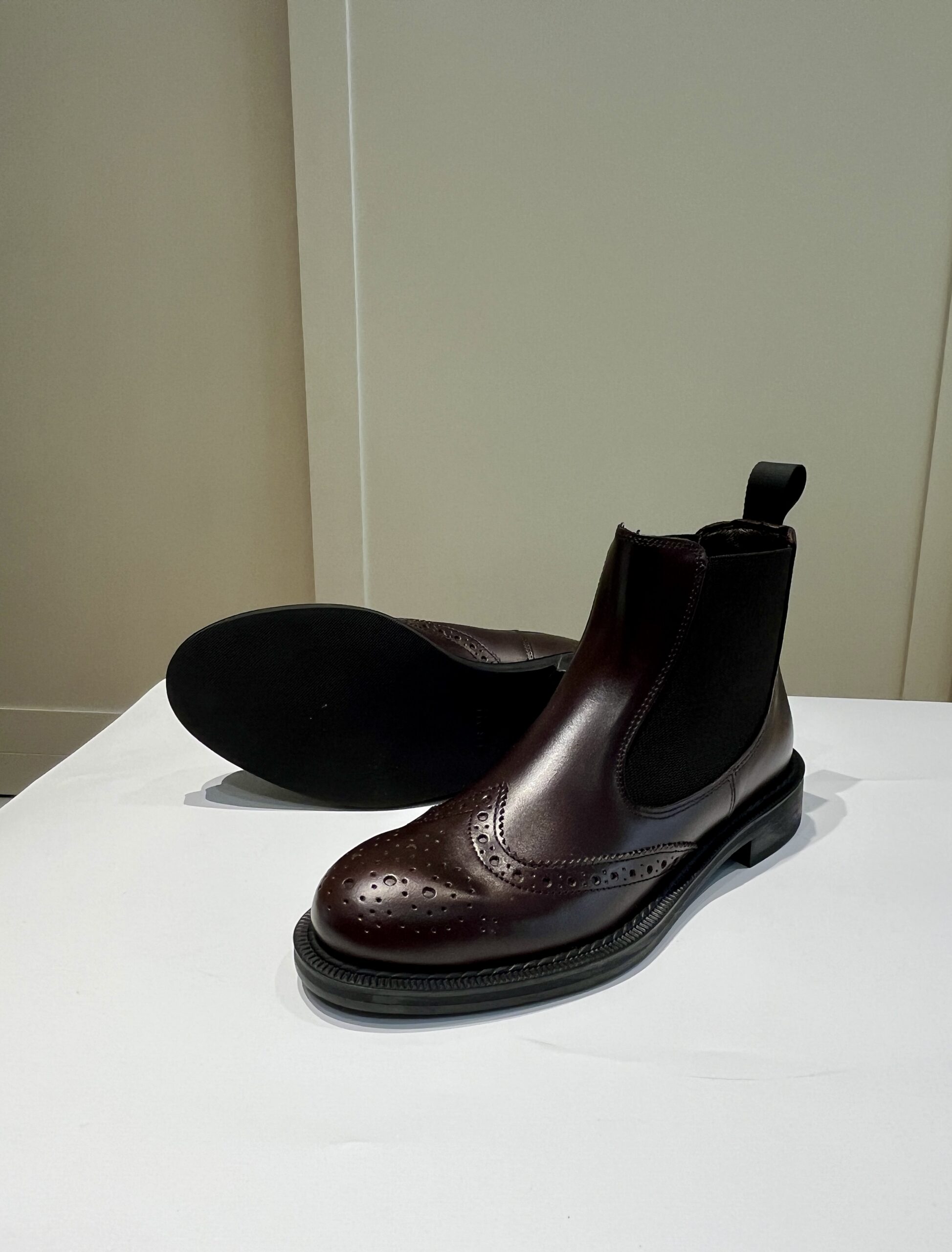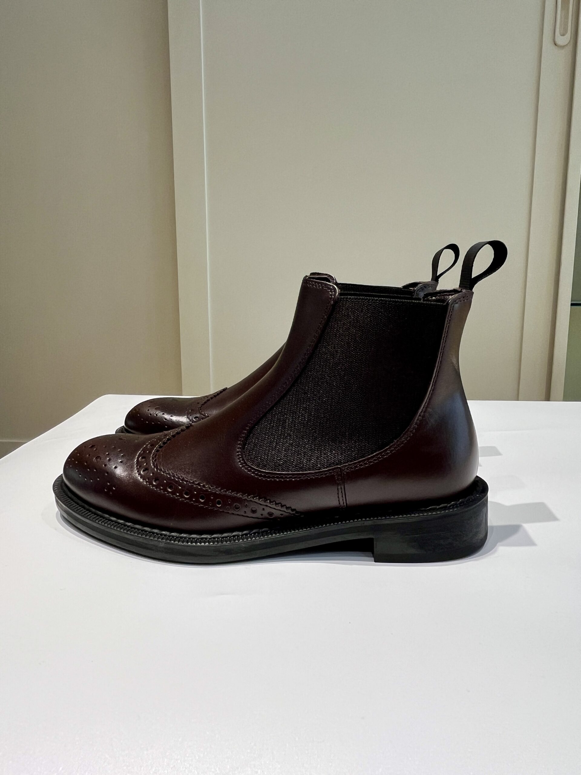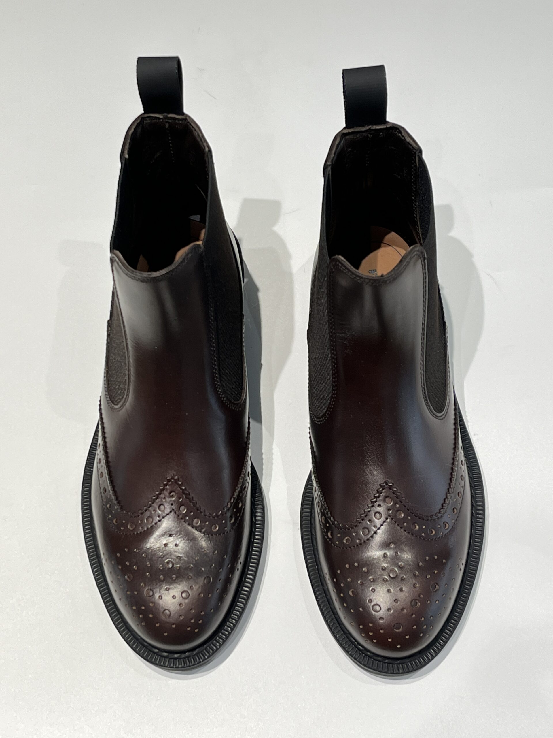 Beatles stile british in pelle color coffee con ricamo a coda di rondine ed elastico bilaterale.
