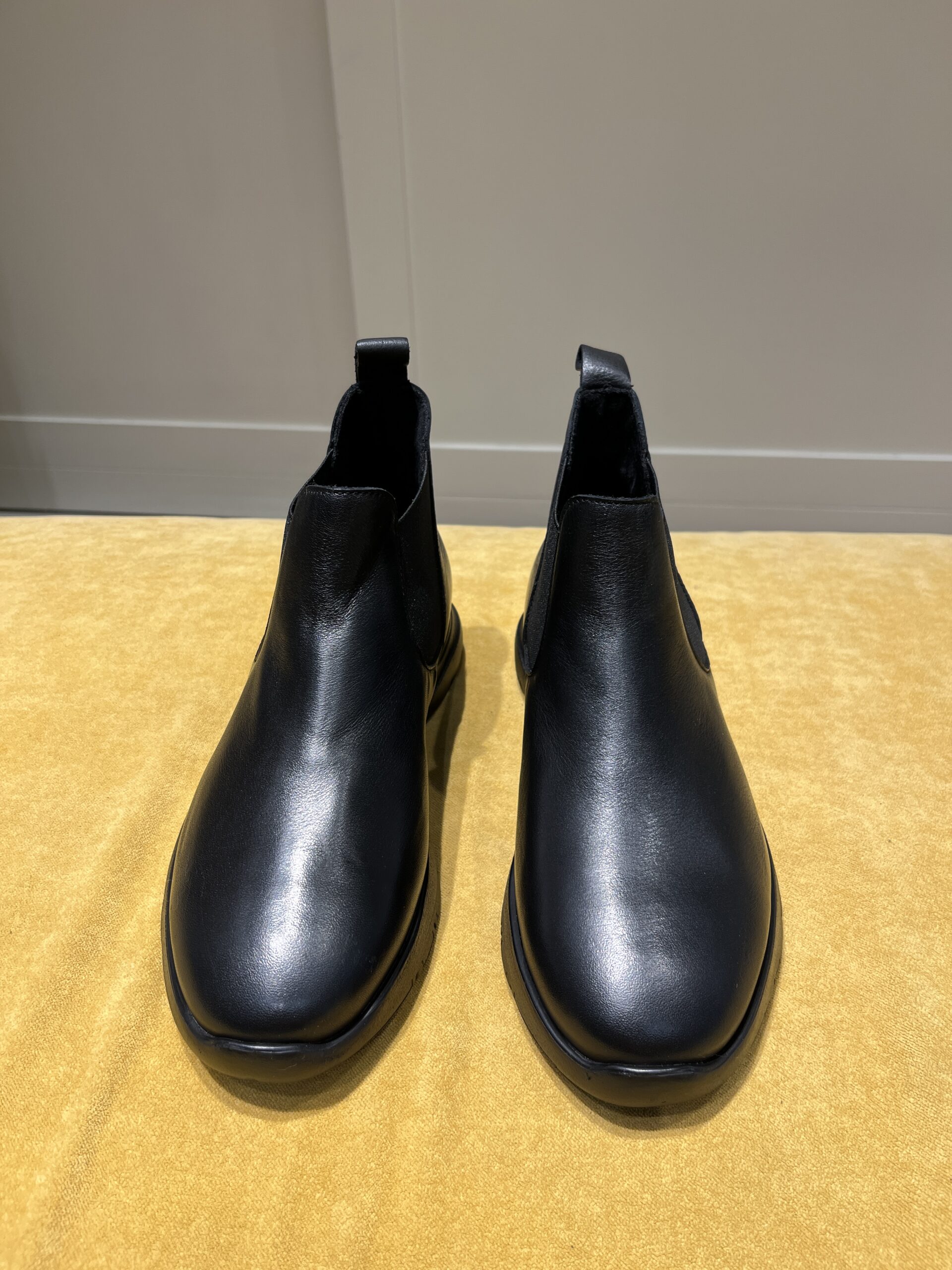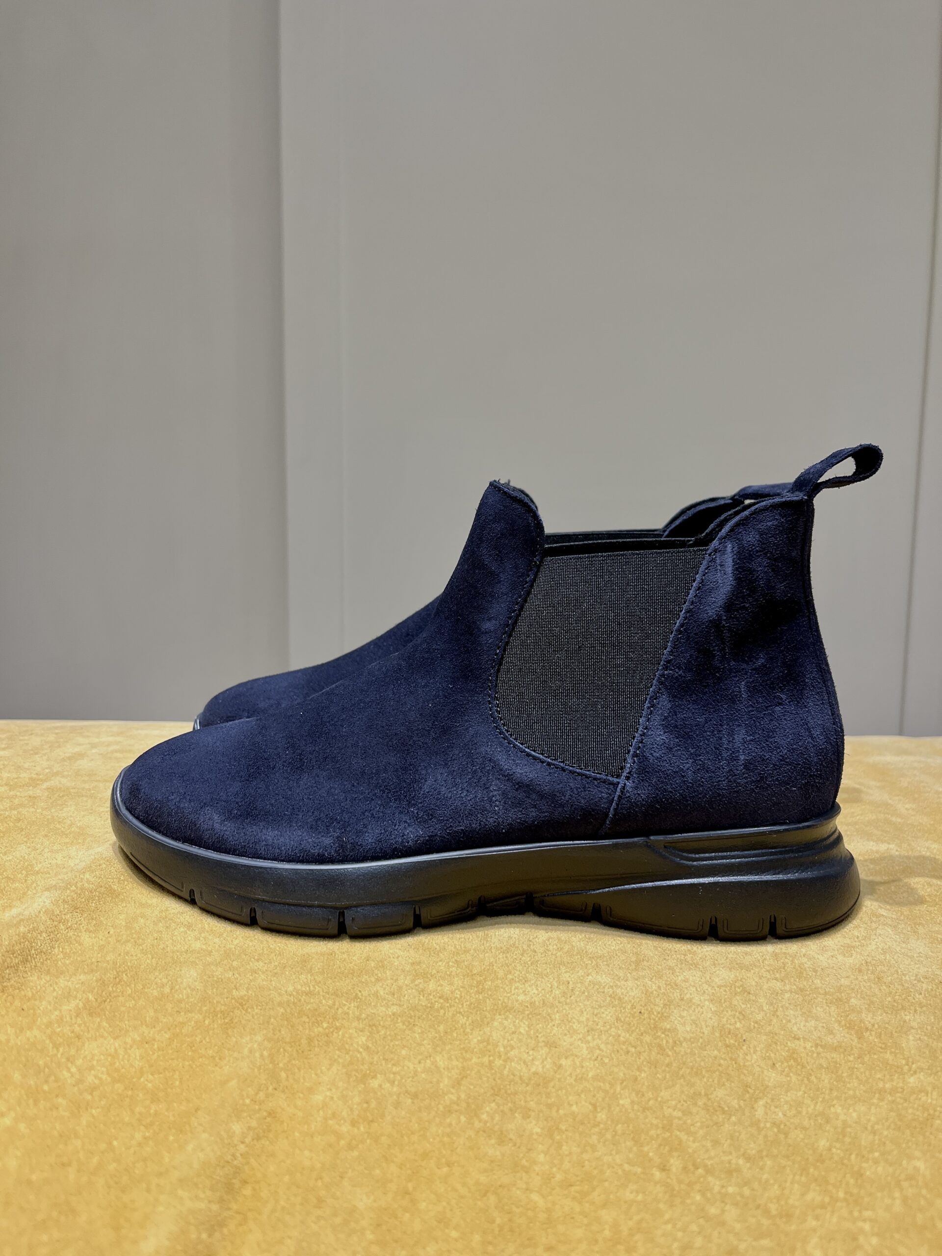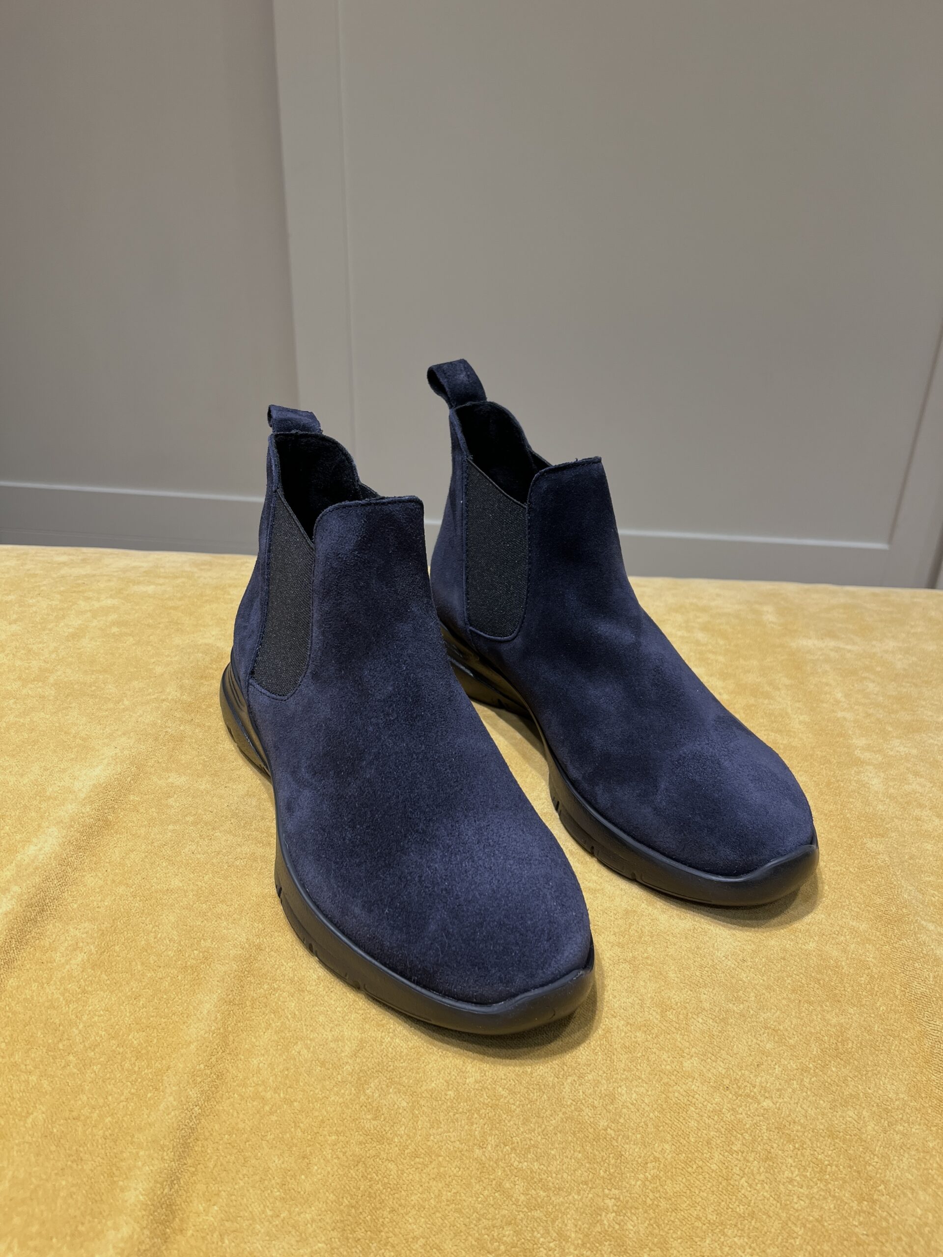 Varianti: pelle nera, camoscio blu e camoscio honey (con suola in tinta)