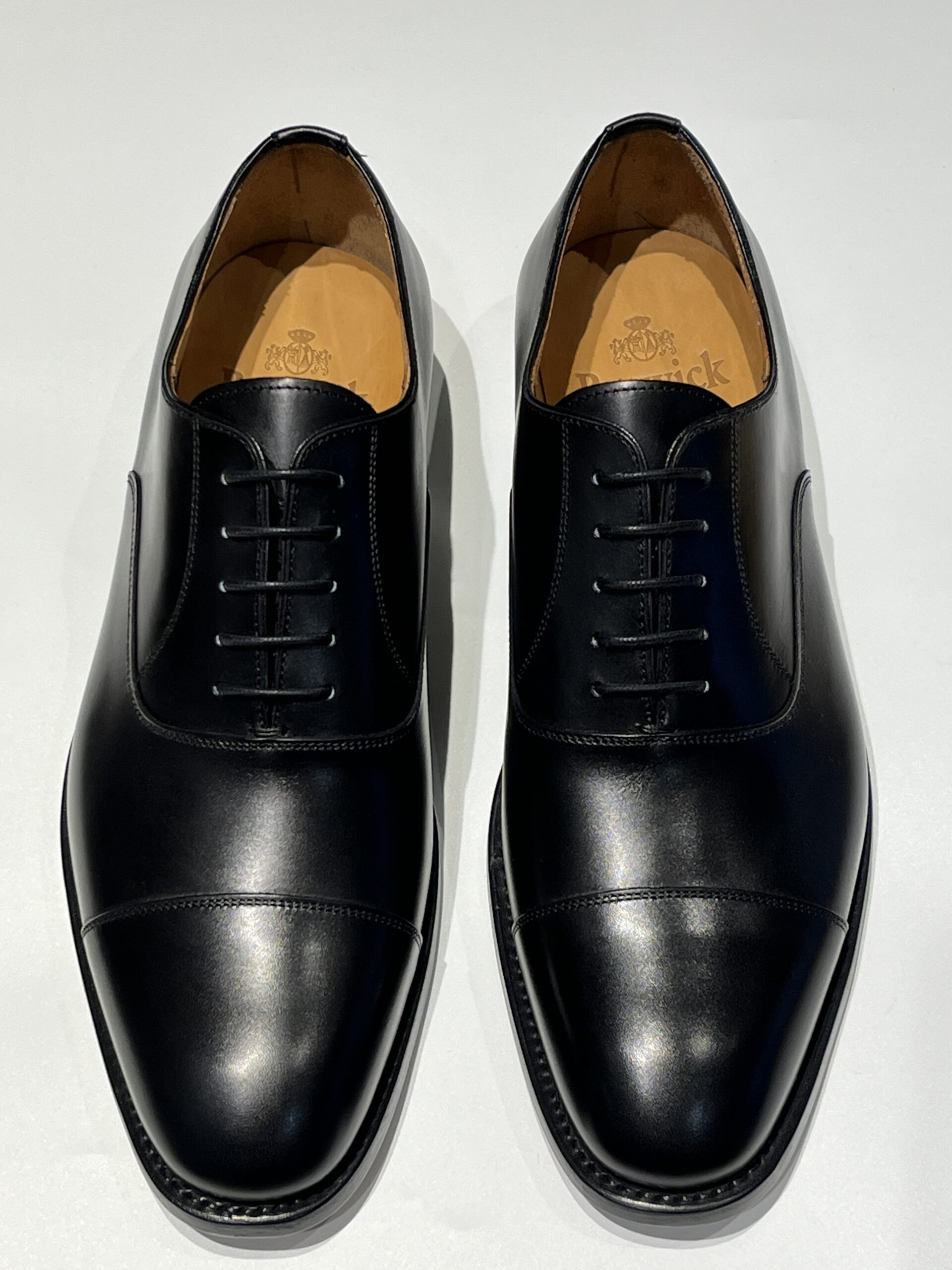 Francesina classica in vitello nero con puntale. Lavorazione “goodyear”.