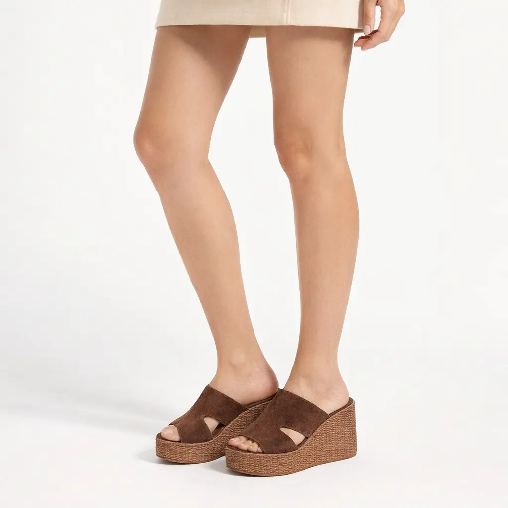 Sabot zeppa platform camoscio moro