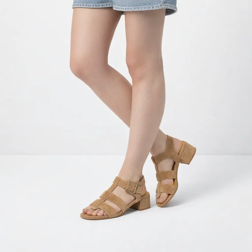 Sandaliera in pelle scamosciata con tacco 3 cm ideale per gli outfit casual per tutti i giorni