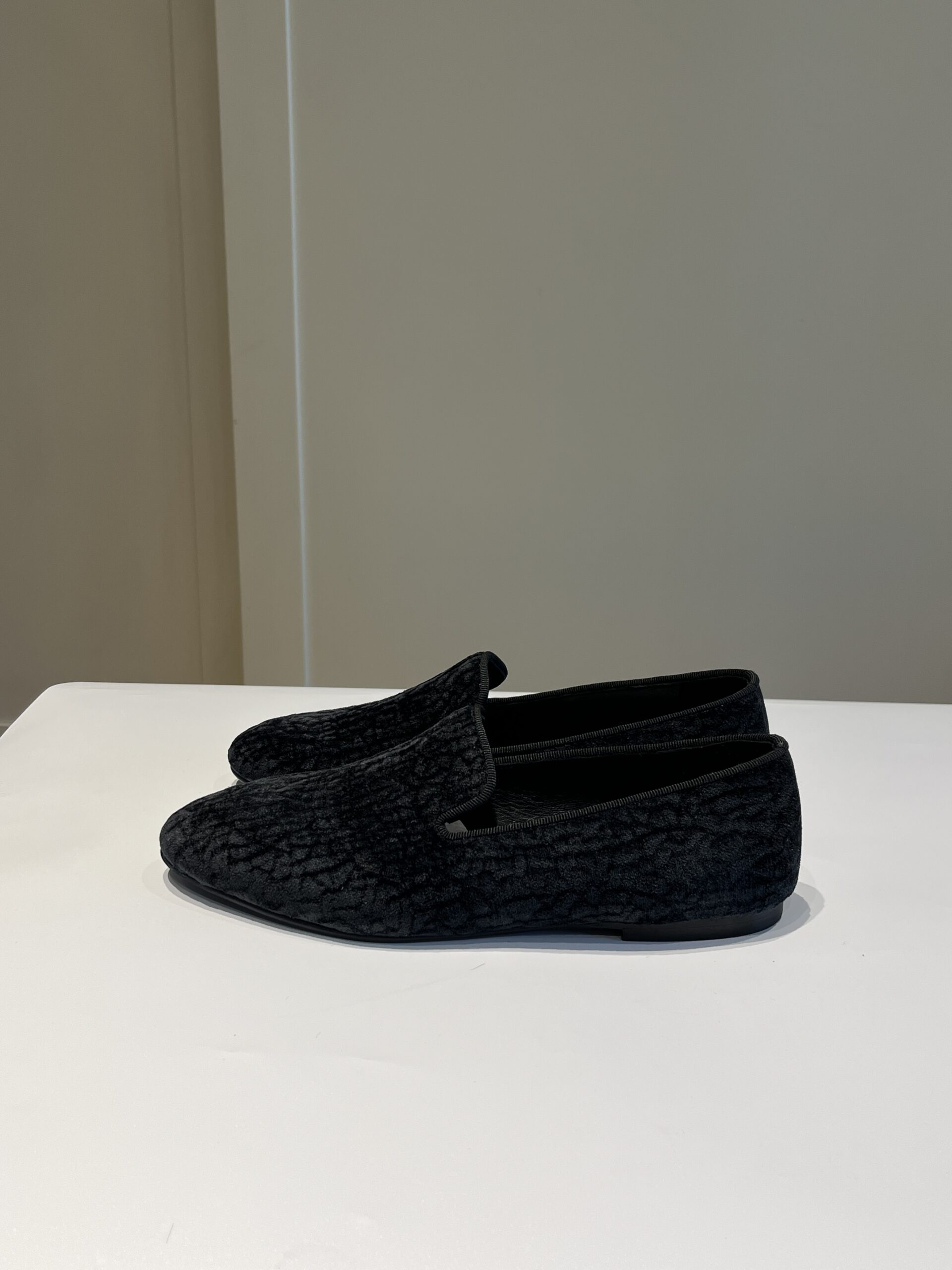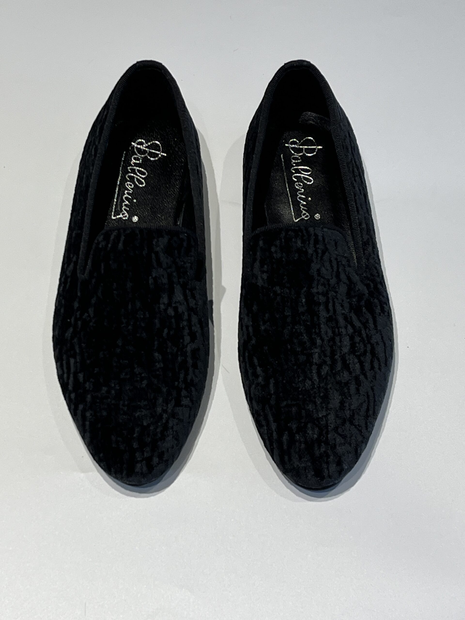 Mocassino “slipper” flat in velluto nero effetto stropicciato con forma sfilata