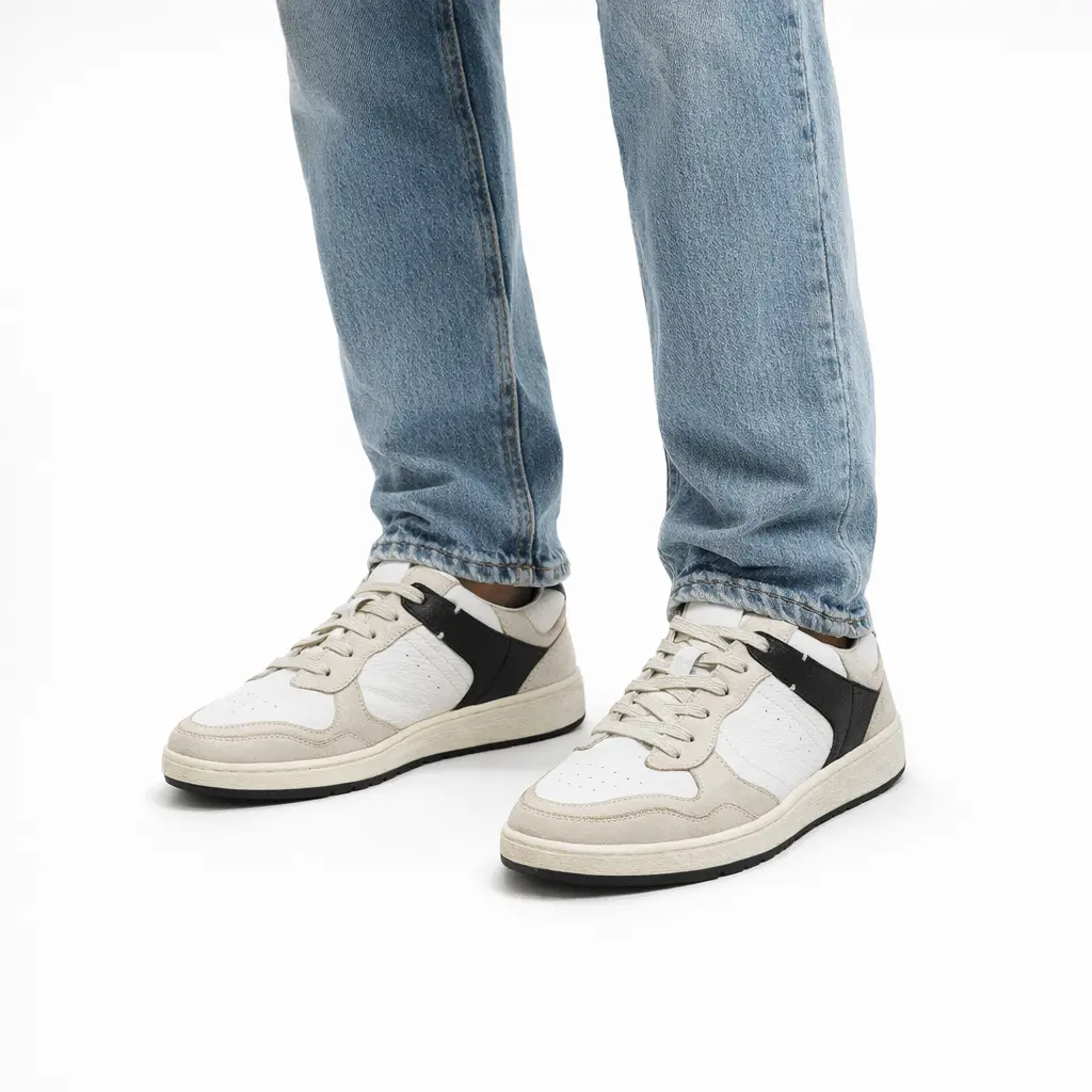 Sneakers dallo stile city casual, realizzate in pelle bianca con dettagli beige e neri, che la rendono versatile e immediata. Perfetta per tutti i giorni