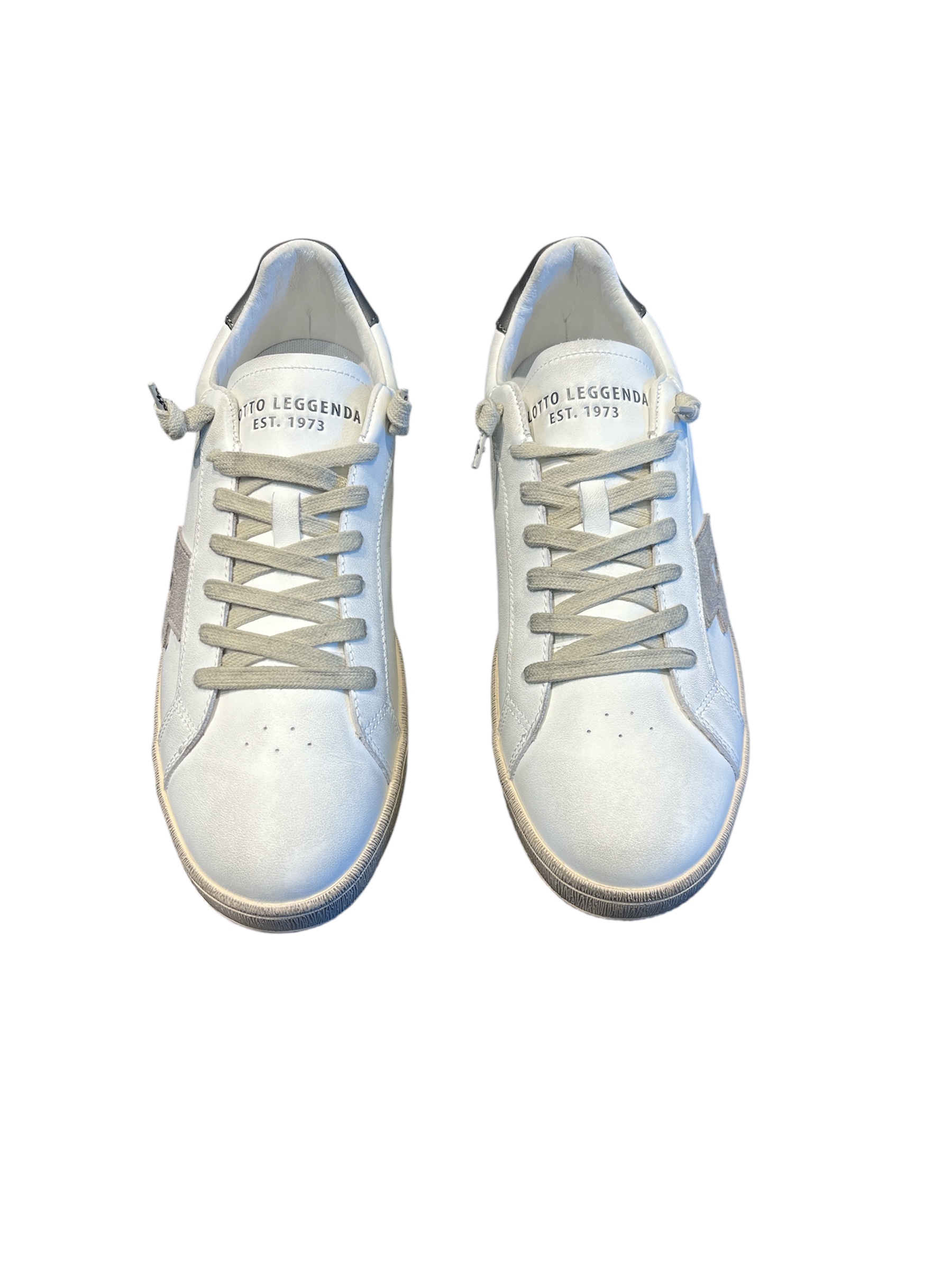 Sneakers Lotto Uomo serie Autograph in pelle bianca con dettagli taupe e antracite. Suola in gomma