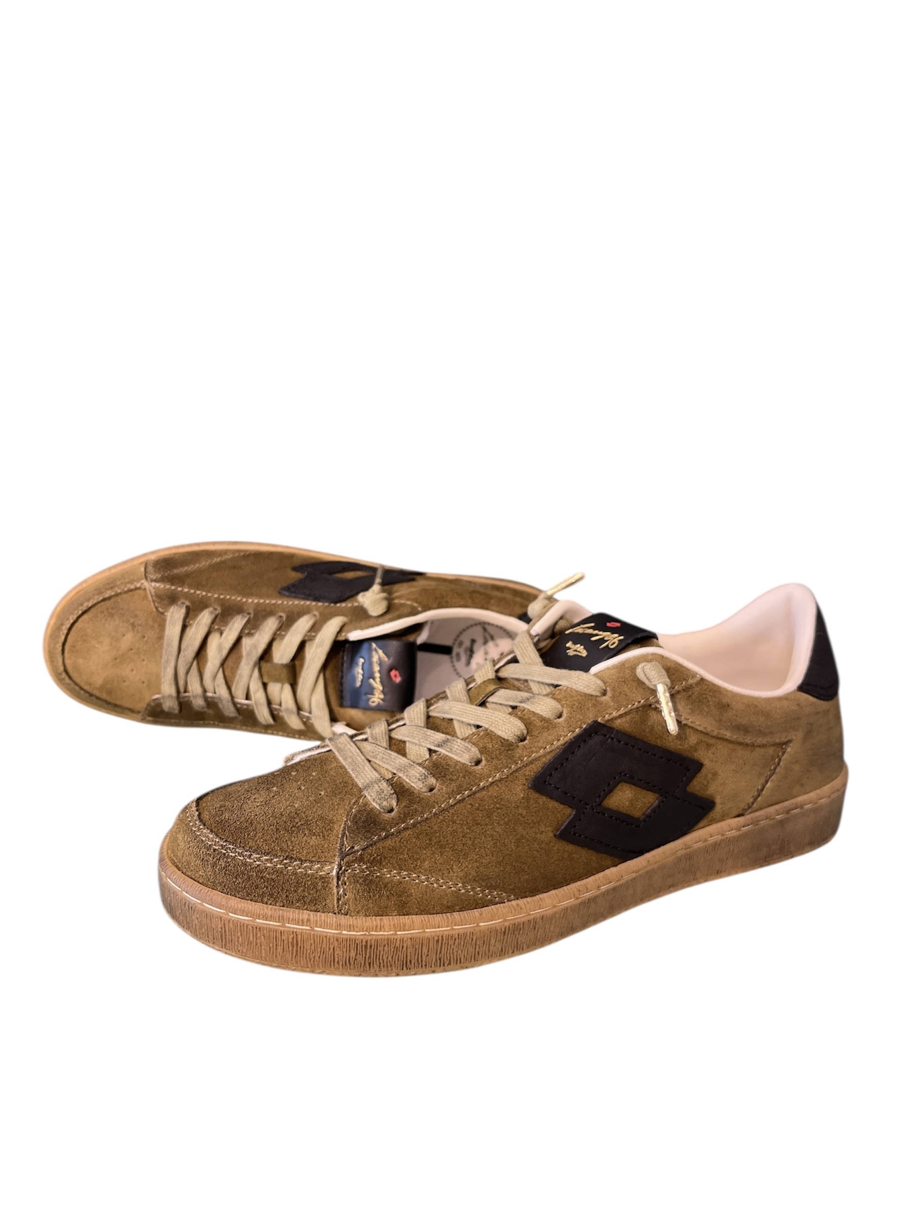 Sneakers uomo Lotto Losanga 76 in camoscio color muschio. Suola in gomma in tinta.