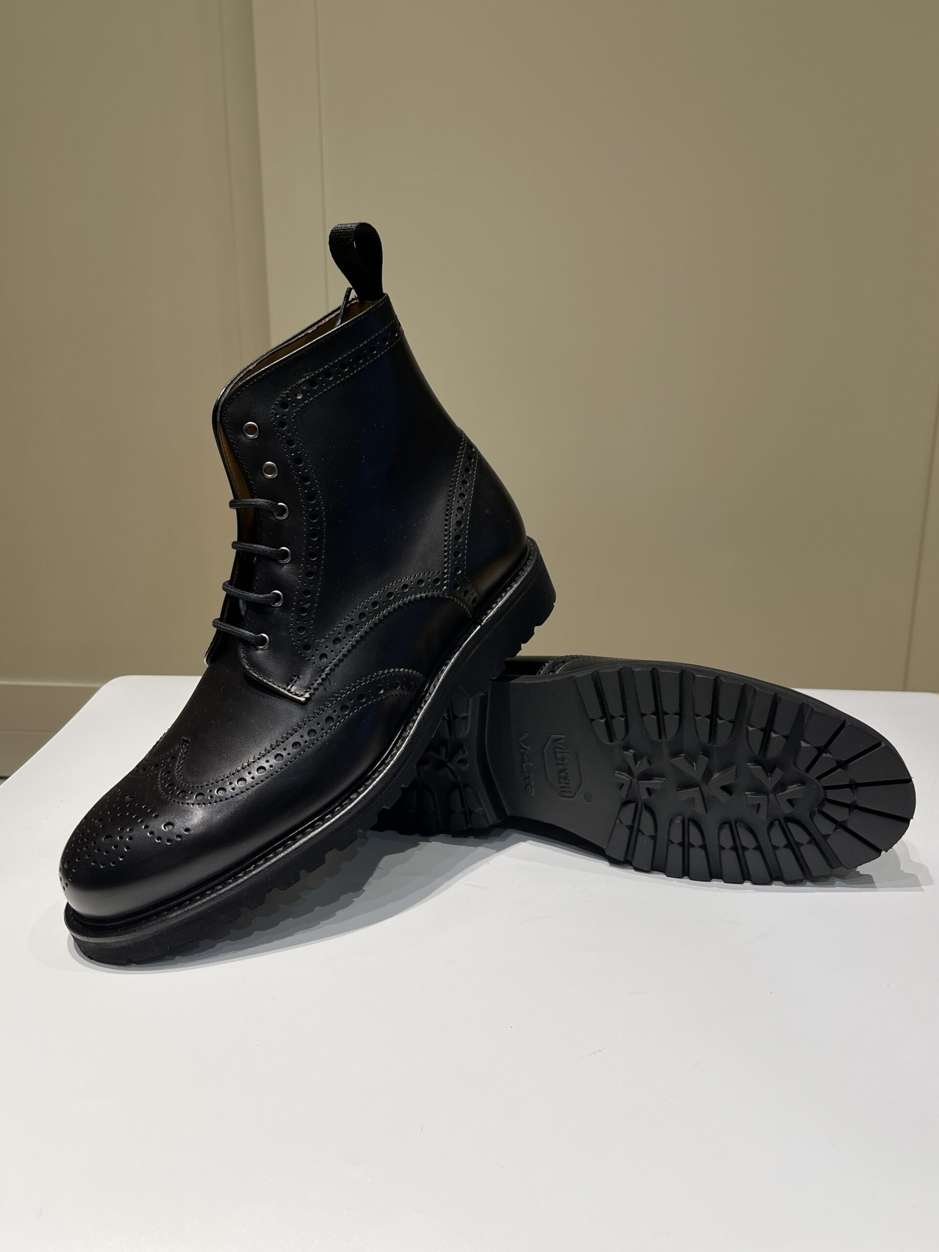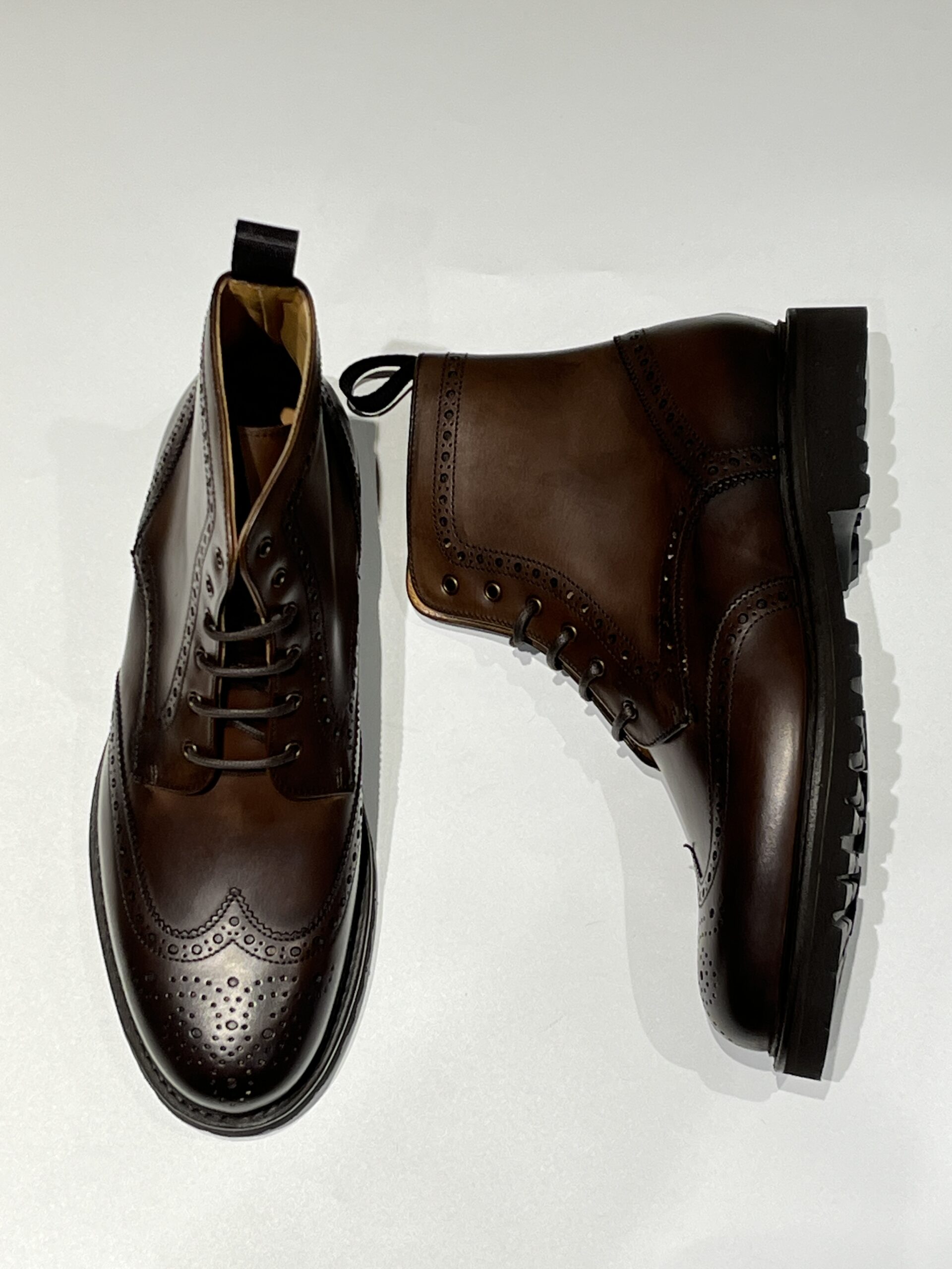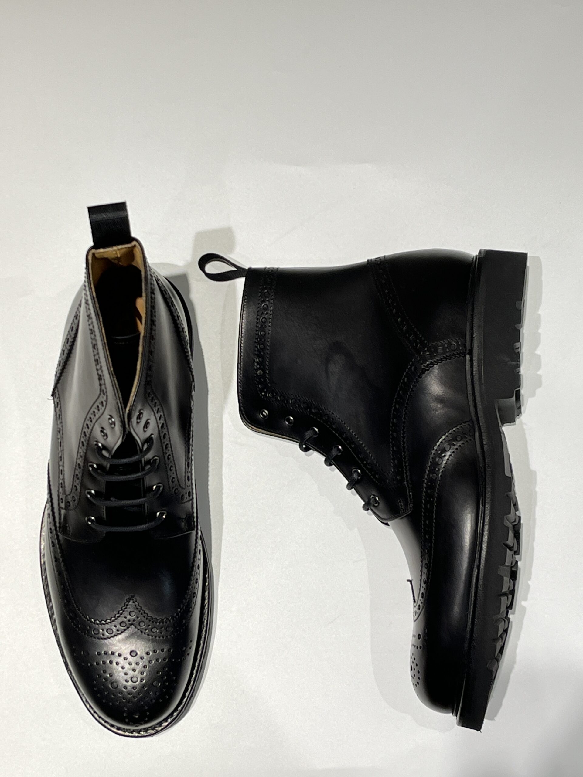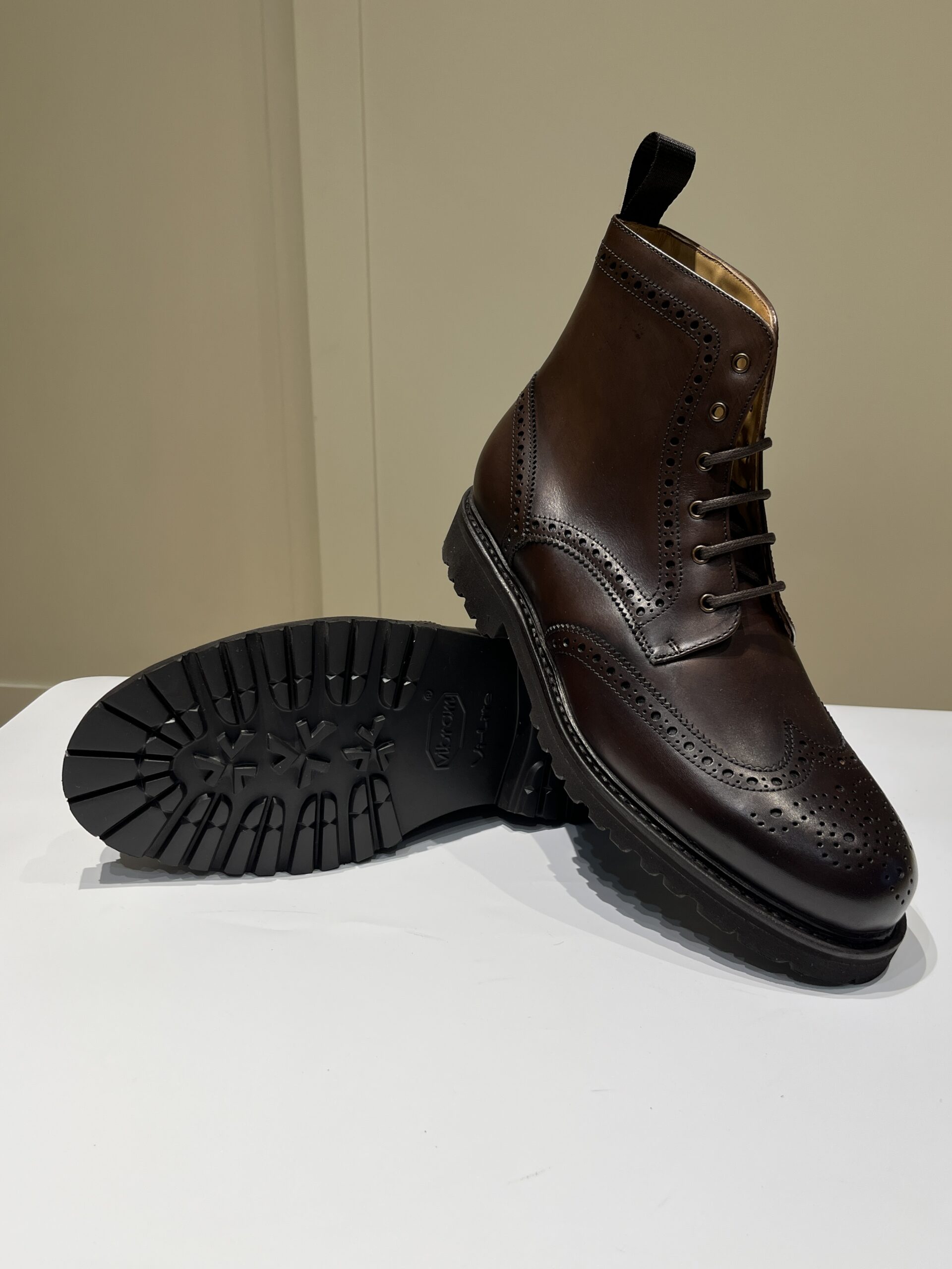 Stivaletto lacci in pelle con motivo coda rondine. Suola in gomma Vibram XL