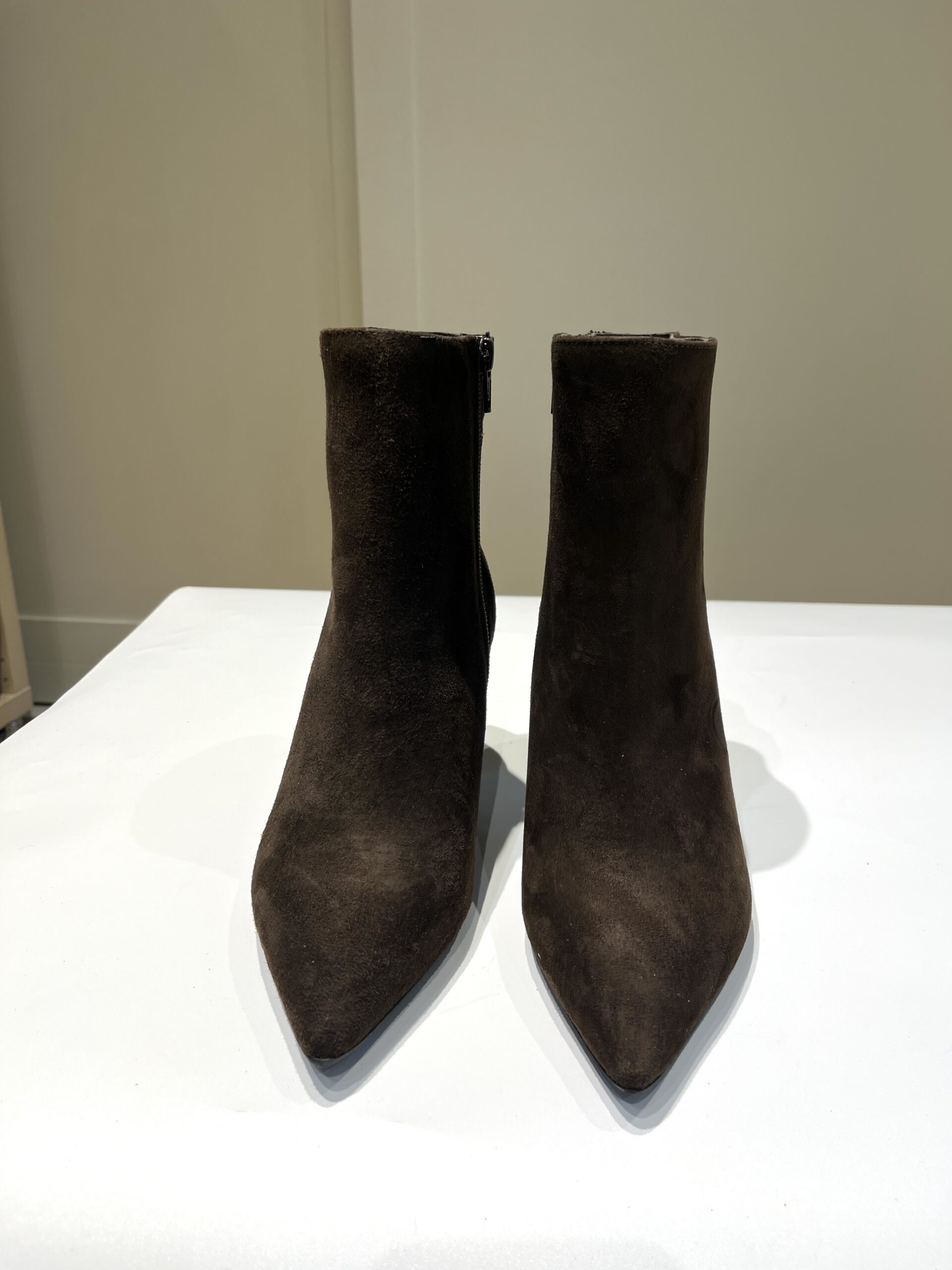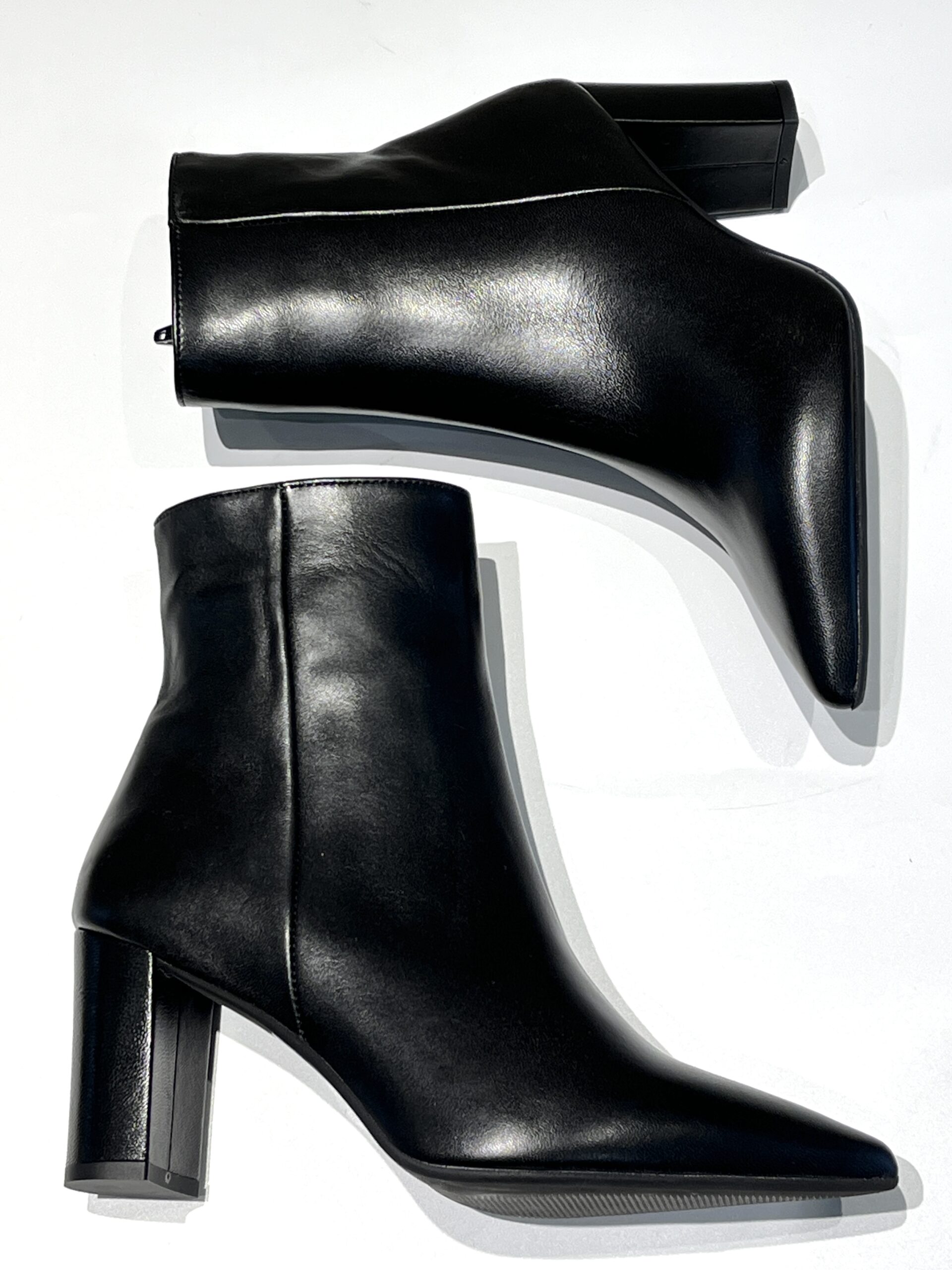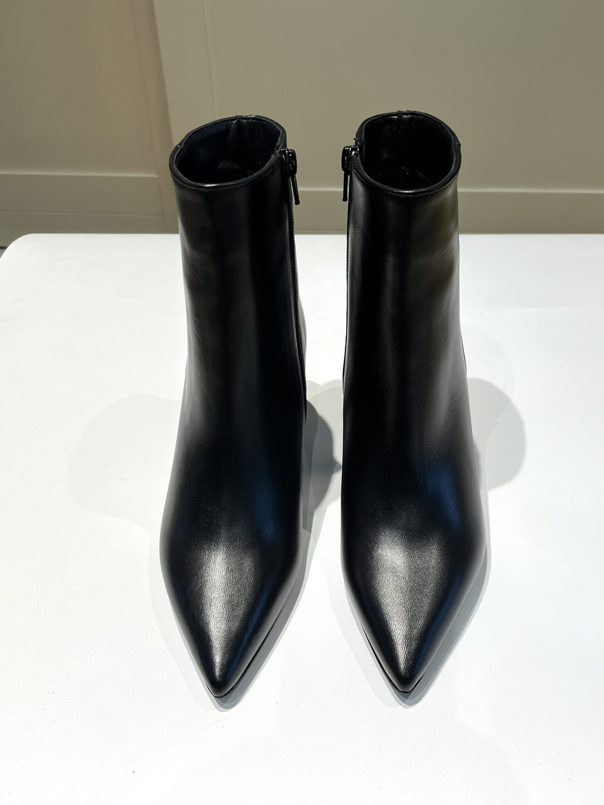 Tronchetto in pelle o camoscio forma sfilata con tacco 7 cm largo.